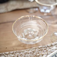 Lot de petites coupes à champagne anciennes en verre ciselé et liseré doré.