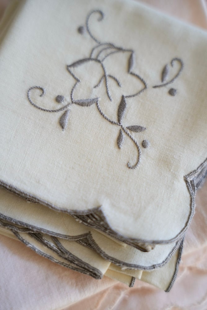 Lot de 2 serviettes brodées en gris.