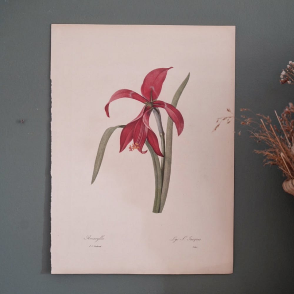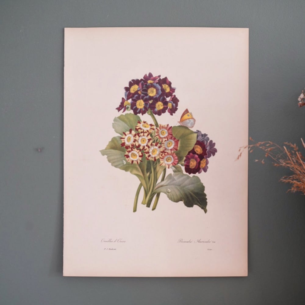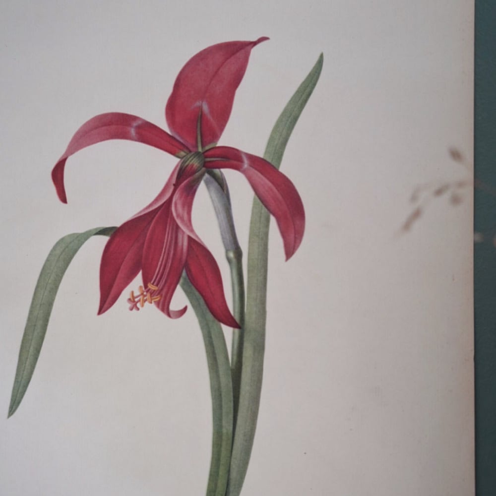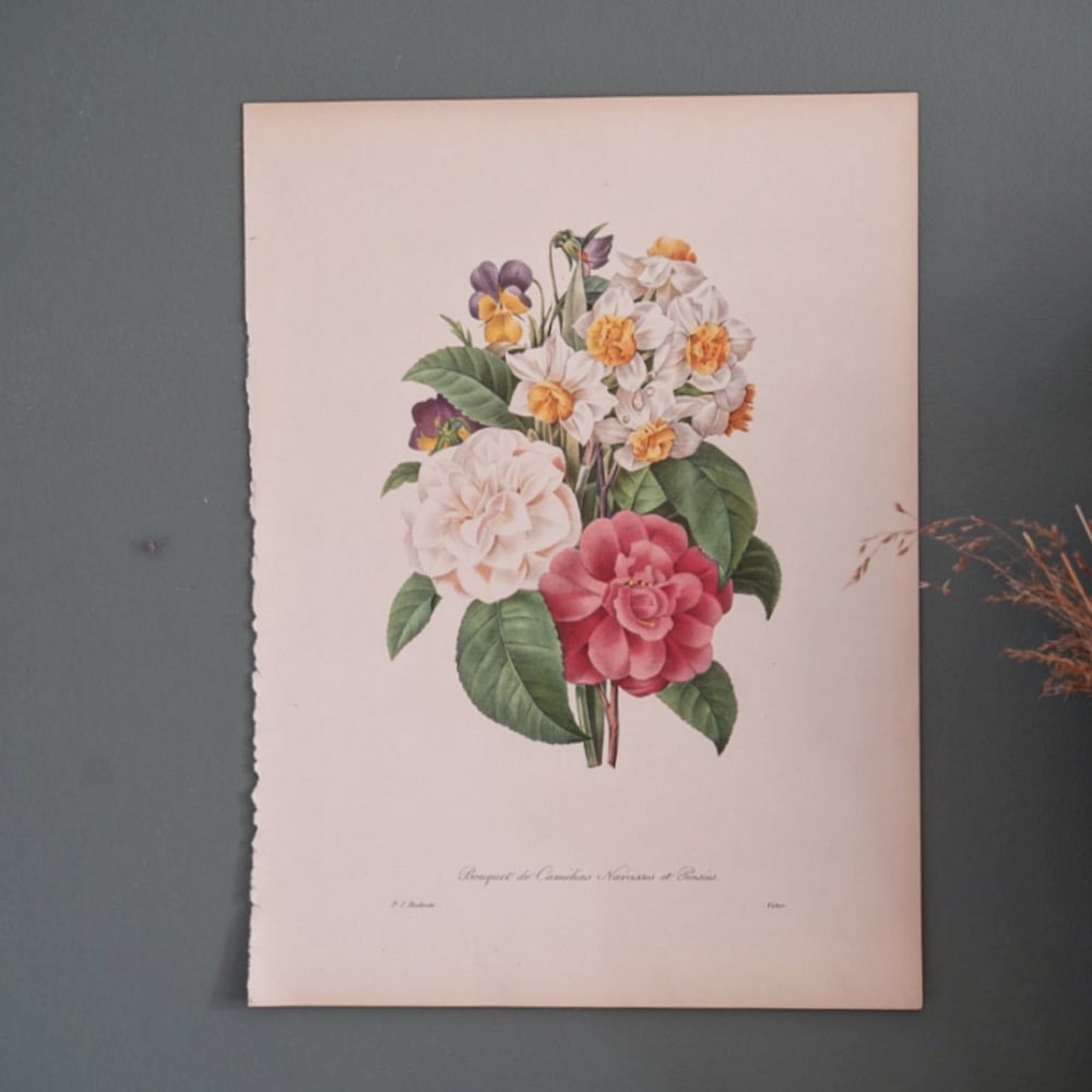 Planches anciennes grand format, peintures de fleurs de P.J. Redouté, 1955.