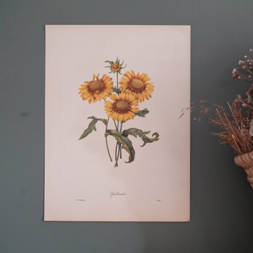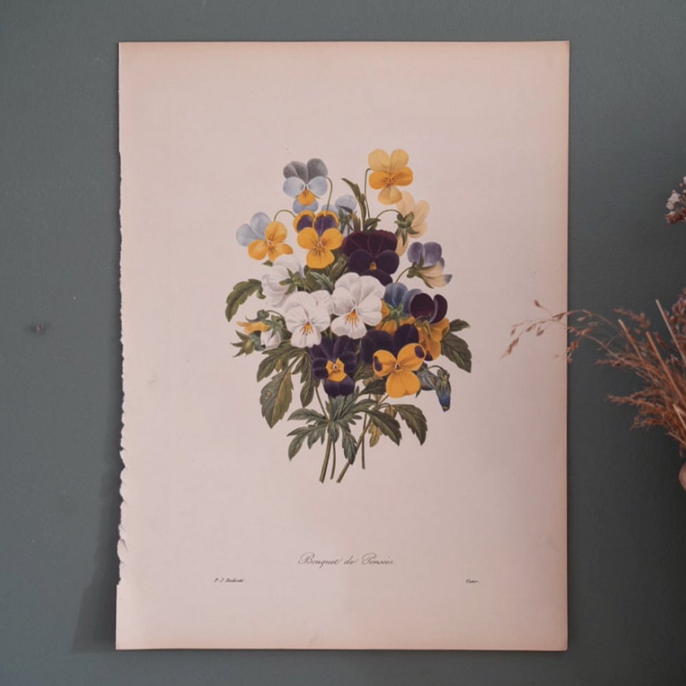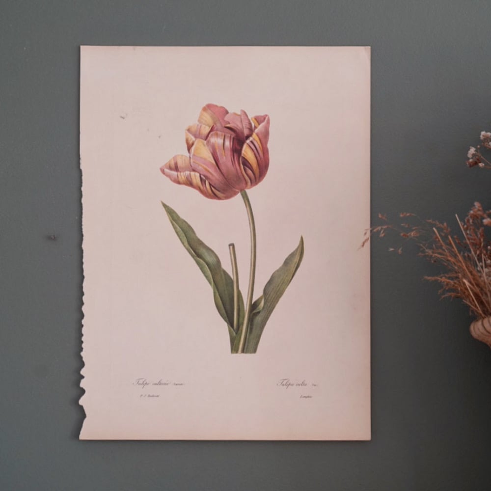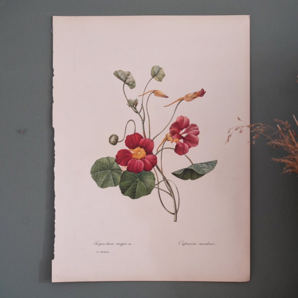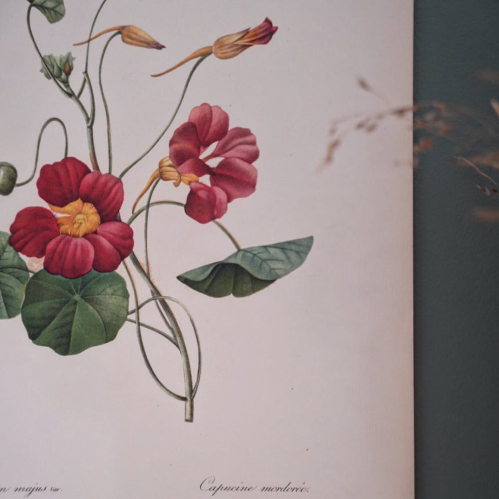 Planches anciennes grand format, peintures de fleurs de P.J. Redouté, 1955.