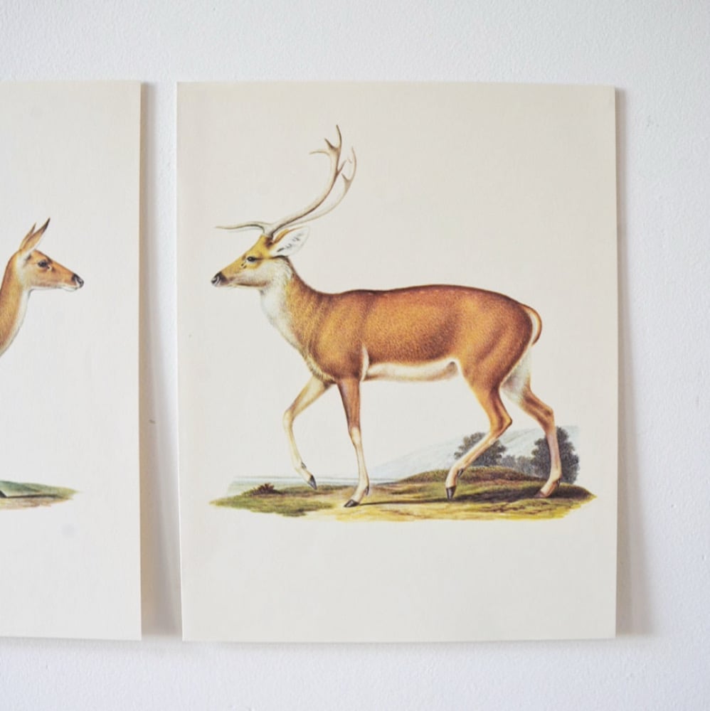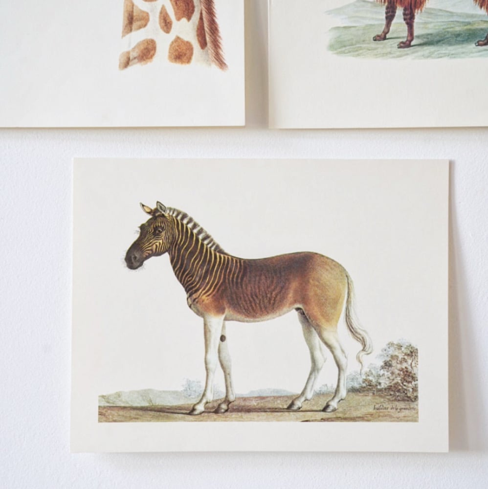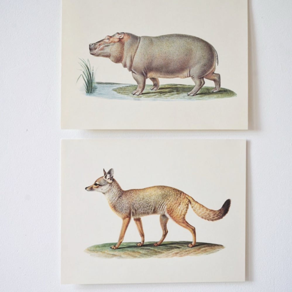 Planche ancienne couleur de Bestiaire sur papier vélin épais, d'après les originaux du Muséum d'Histoire Naturelle.