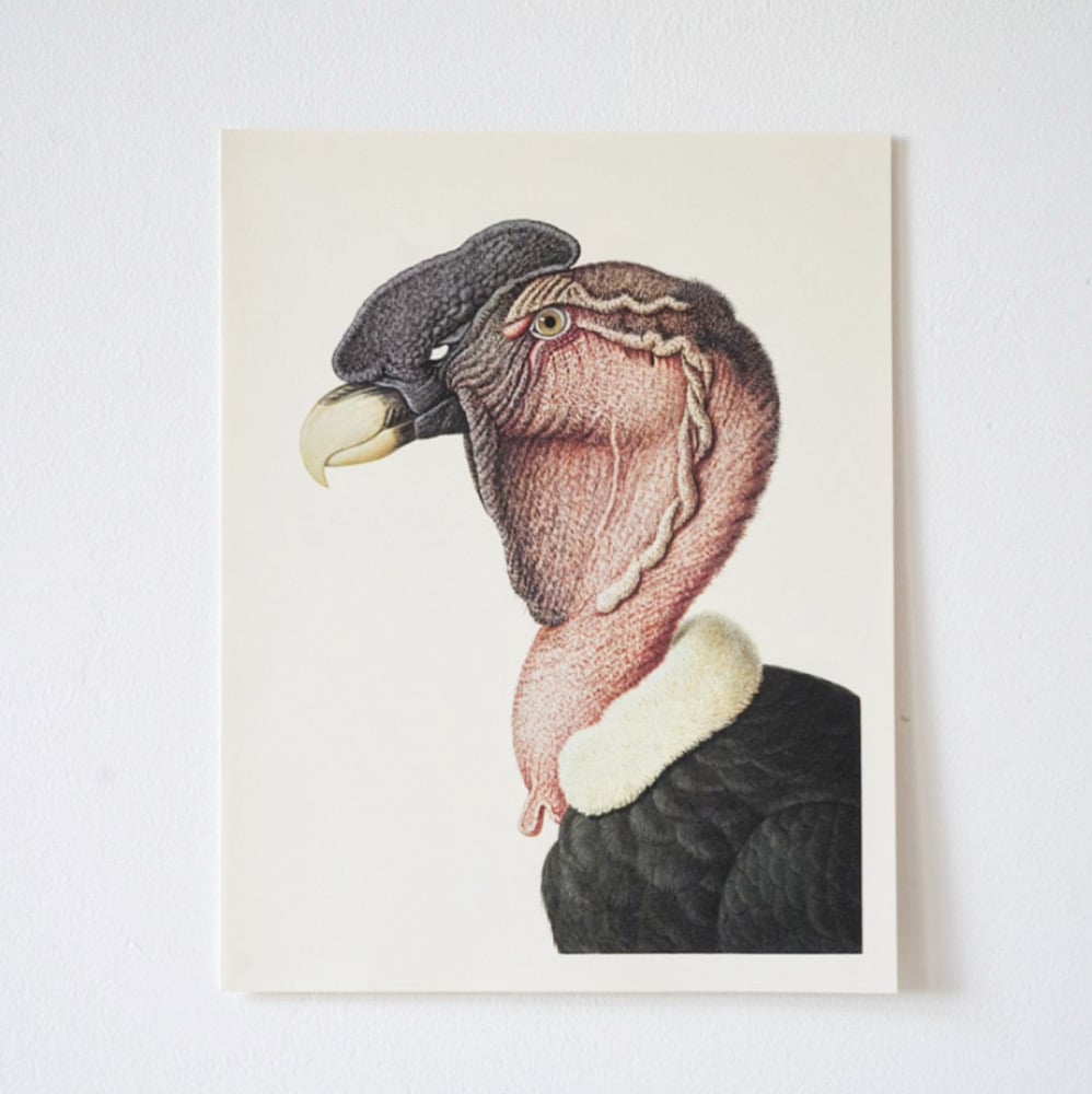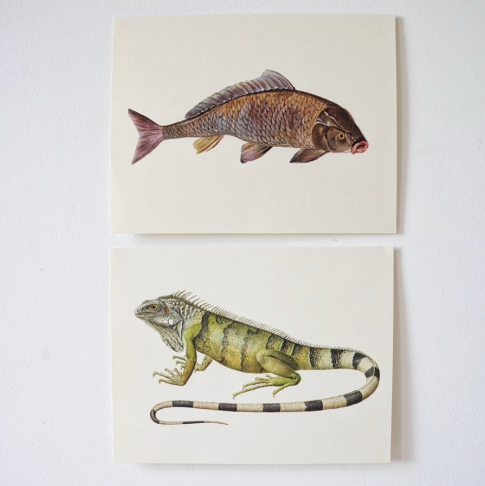 Planche ancienne couleur de Bestiaire sur papier vélin épais, d'après les originaux du Muséum d'Histoire Naturelle.