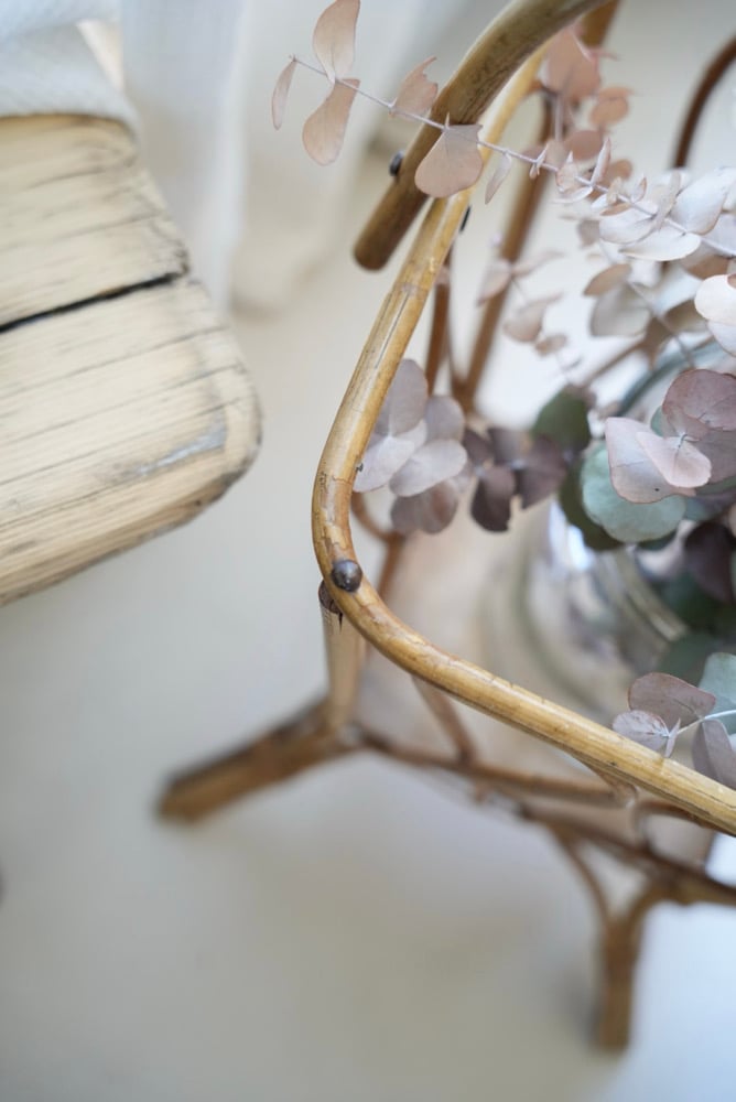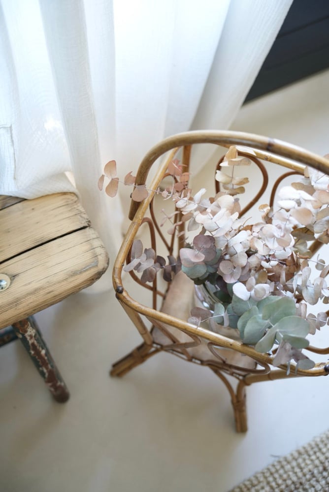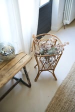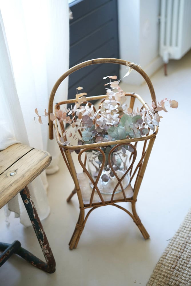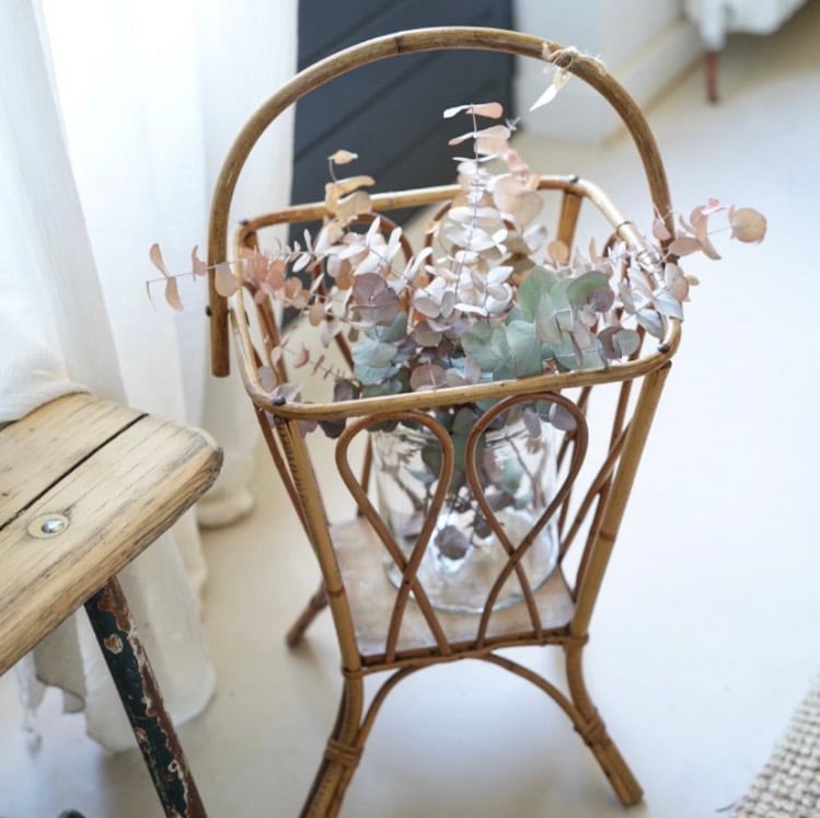 Travailleuse en rotin des années 70 à détourner en porte plante.